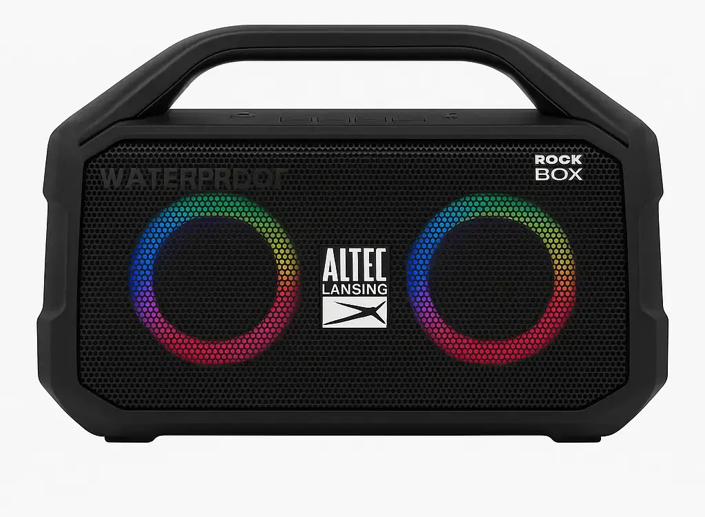 Altec Lansing RockBox XL waterproof Bluetooth speaker with LED ring lights and rugged handle